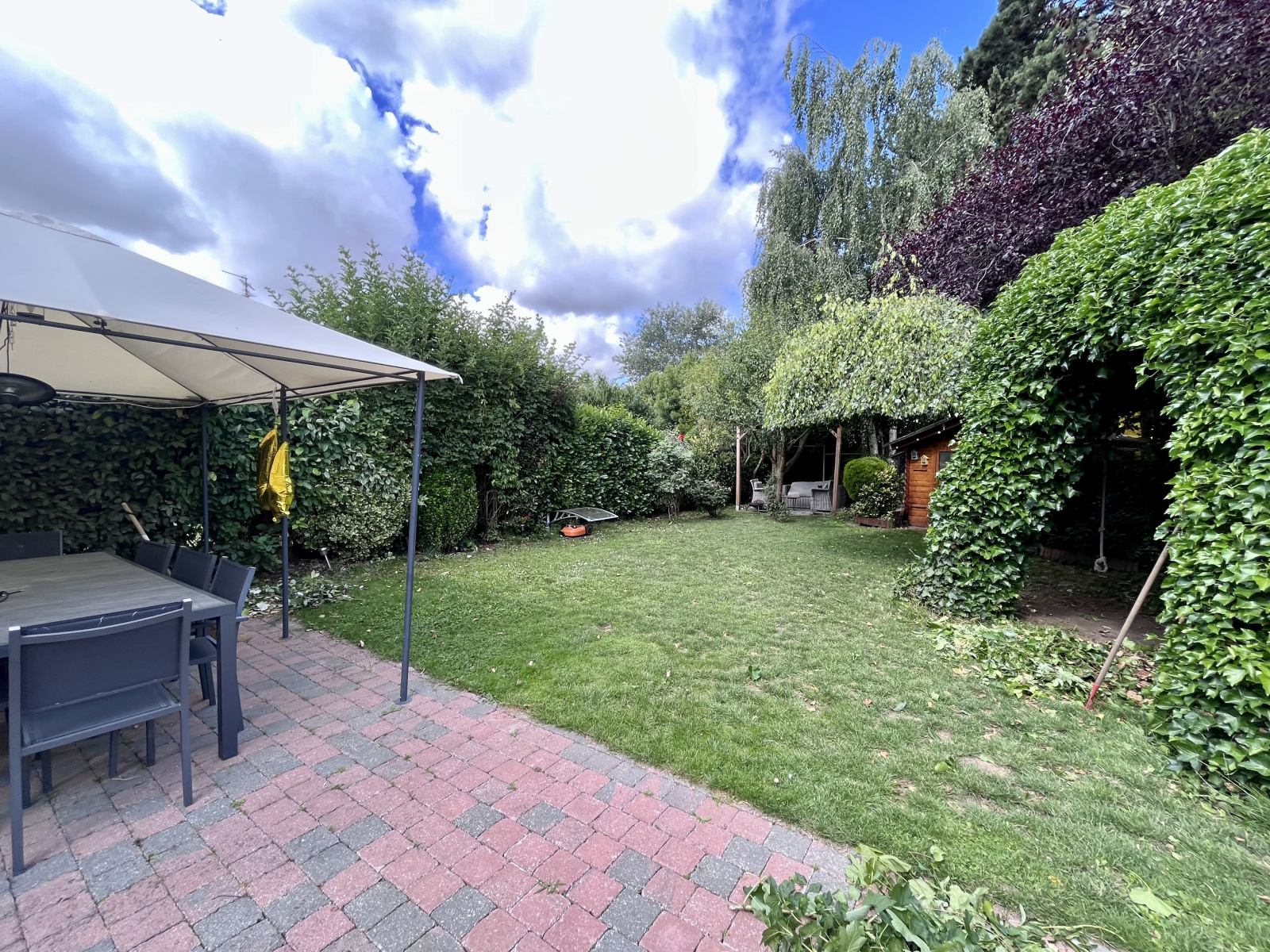 La maison s'apprécie également depuis le jardin parfaitement entretenu et conçu où un abri permet le rangement des vélos et des outils ; le barbecue, quant-à lui, trouvera sa place sous un auvent à proximité de la terrasse.