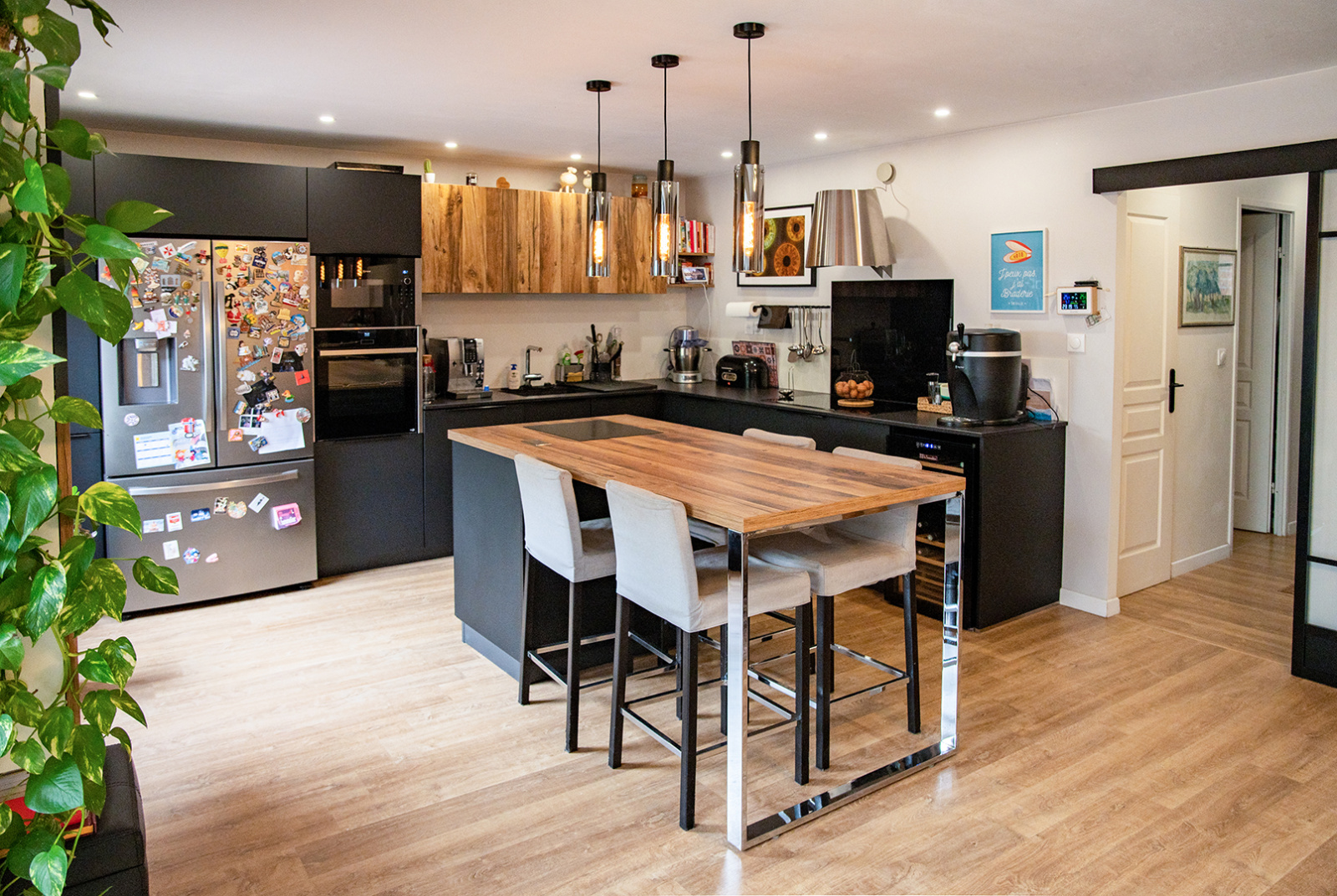 A l'étage, on trouve 3 chambres dont une suite parentale avec dressing et salle de bains (baignoire balnéo), 1 seconde salle de bains avec WC.